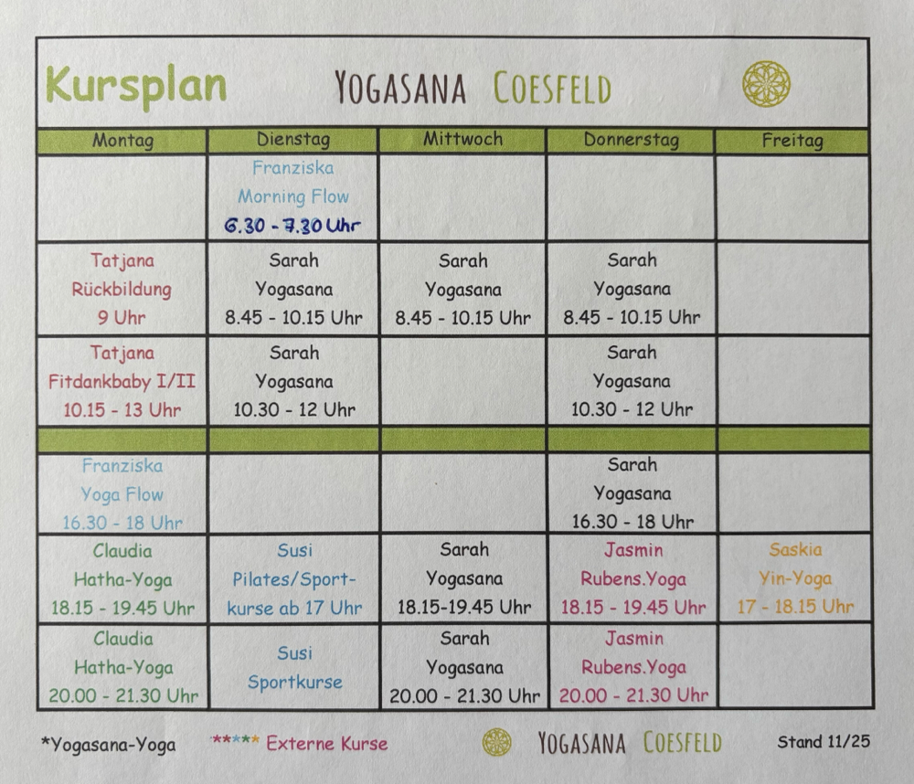 (Für Präventionskurse Yogasana-Yoga besteht eine abweichende Regelung.)